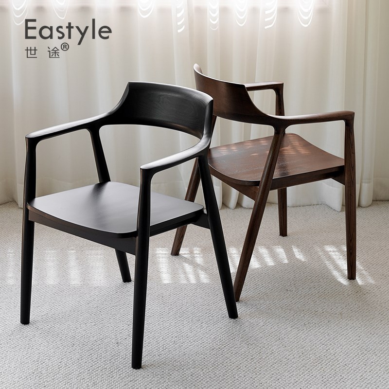 白蜡木靠背餐椅北欧实木舒美特书椅扶手座椅书房椅子牛角椅总统椅