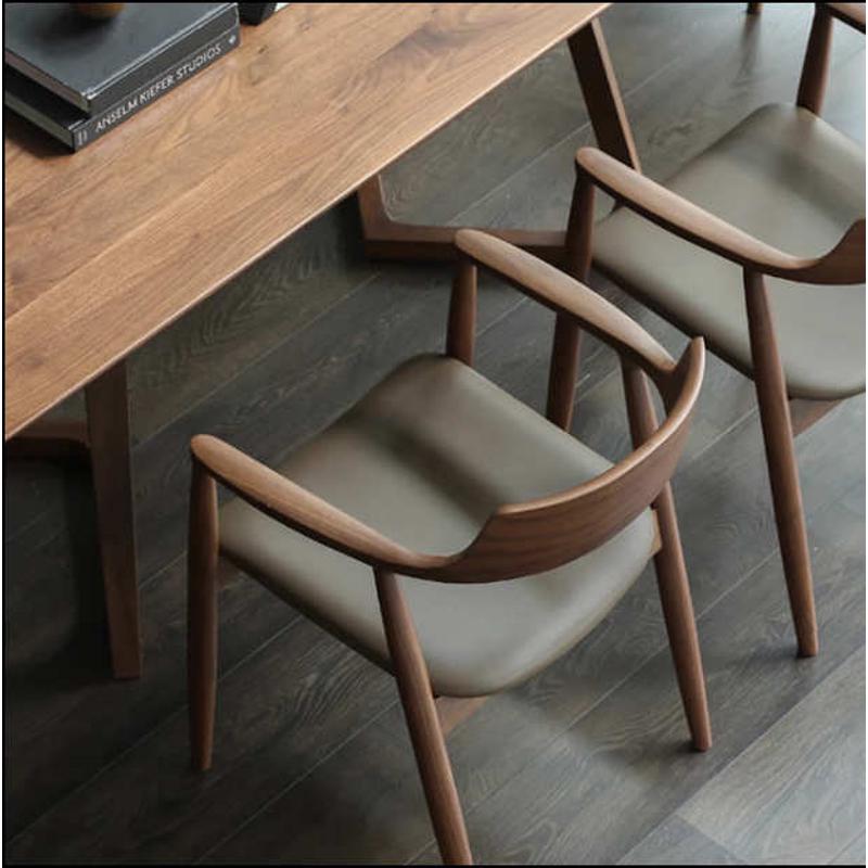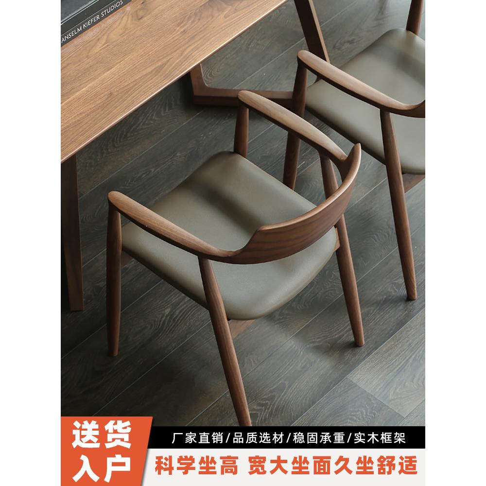 北欧家用实木广岛椅简约靠背扶手餐椅现代办公会议圈椅牛角总统椅