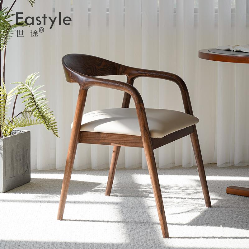 侘寂风悬浮餐椅扶手挂耳椅家用实木软包椅子北欧日式总统椅牛角椅
