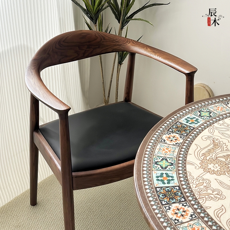 肯尼迪总统椅北美黑胡桃木书椅实木茶椅轻奢扶手椅靠背椅休闲圈椅