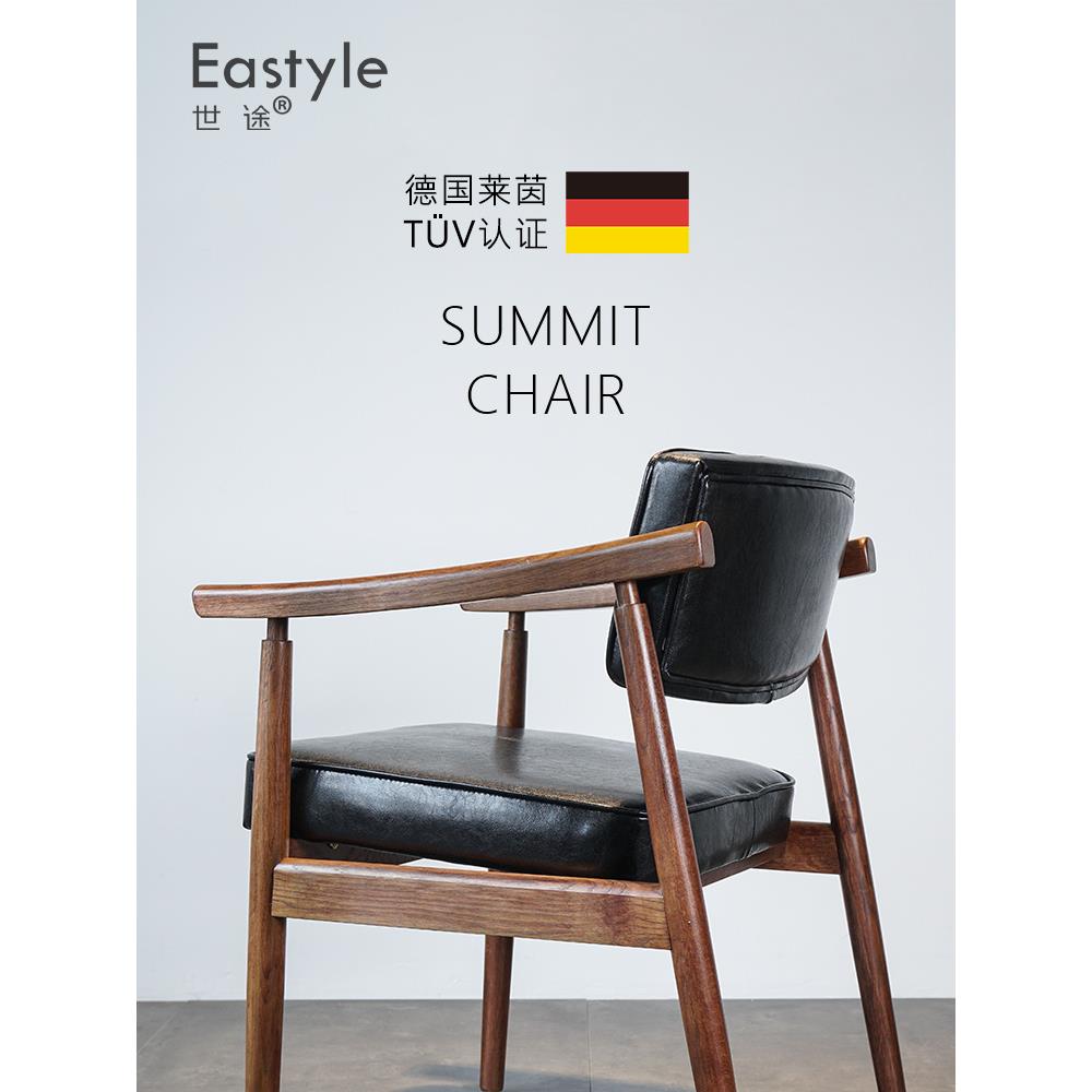 星威北欧美式实木真皮家用肯尼迪总统椅轻奢成人休闲靠背扶手餐椅