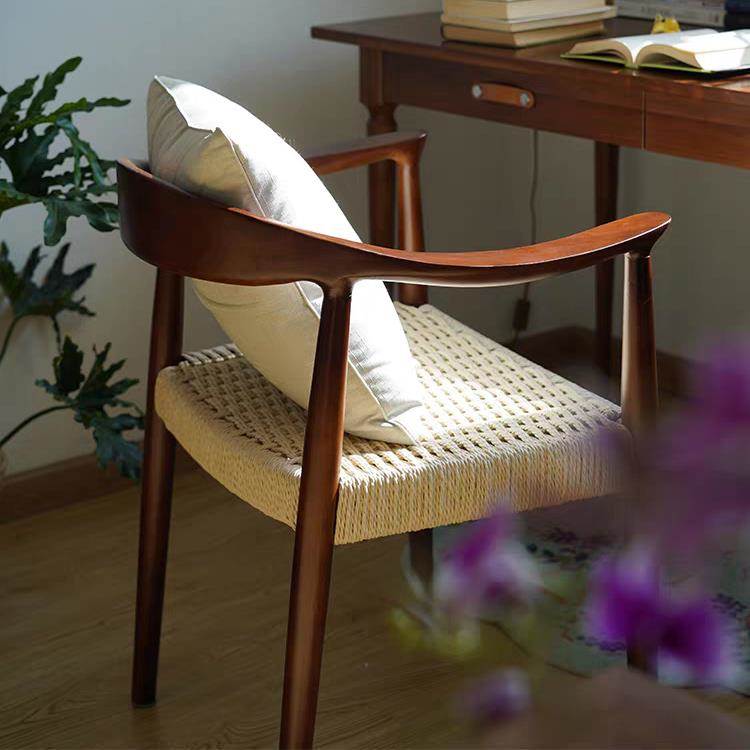 复古总统椅北欧实木餐椅家用简约现代靠背扶手椅子日式绳编书桌椅