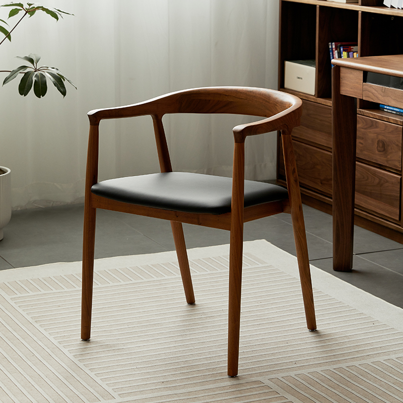 北欧实木总统椅胡桃木色餐椅日式书桌椅扶手舒适复古书房软包椅子