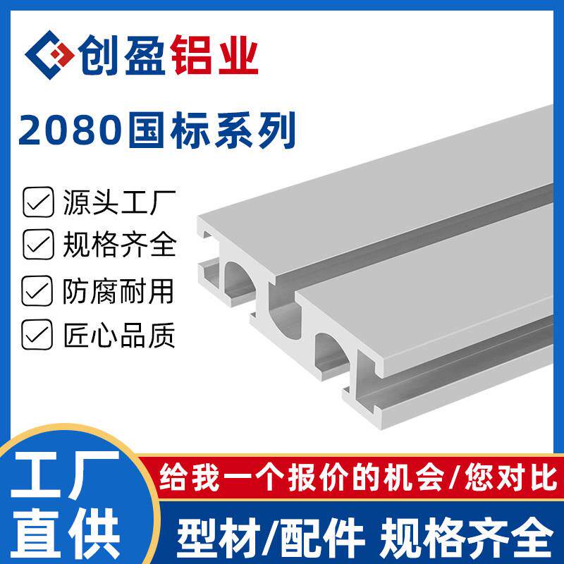 国标2080工业铝合金型材机械设备框架工作台2080轨道滑槽轨铝材