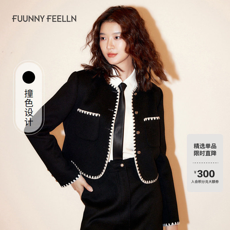 虫小小 轻奢羊绒羊毛撞色双面呢短款大衣女毛呢外套上衣秋冬A71K