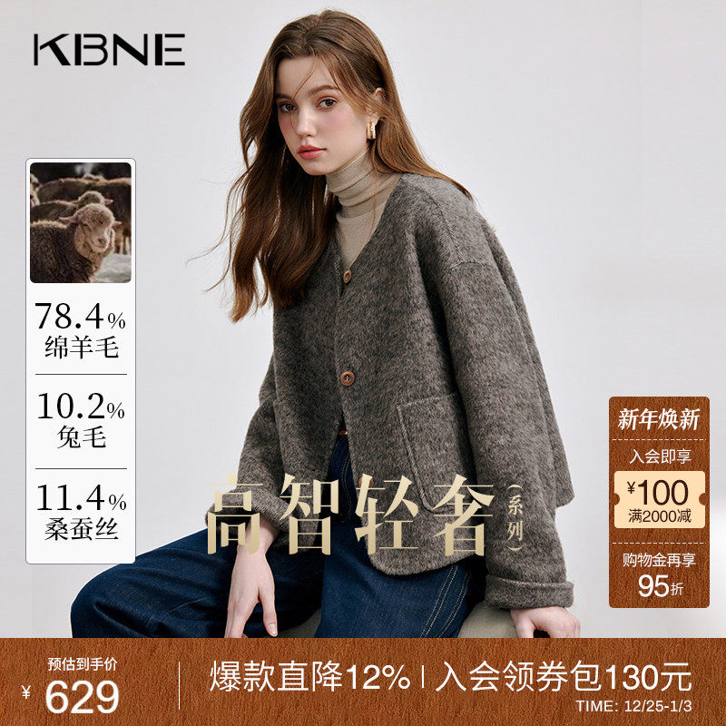 KBNE毛呢外套女绵羊毛短款双面呢子大衣小个子2025新款秋冬季外衣
