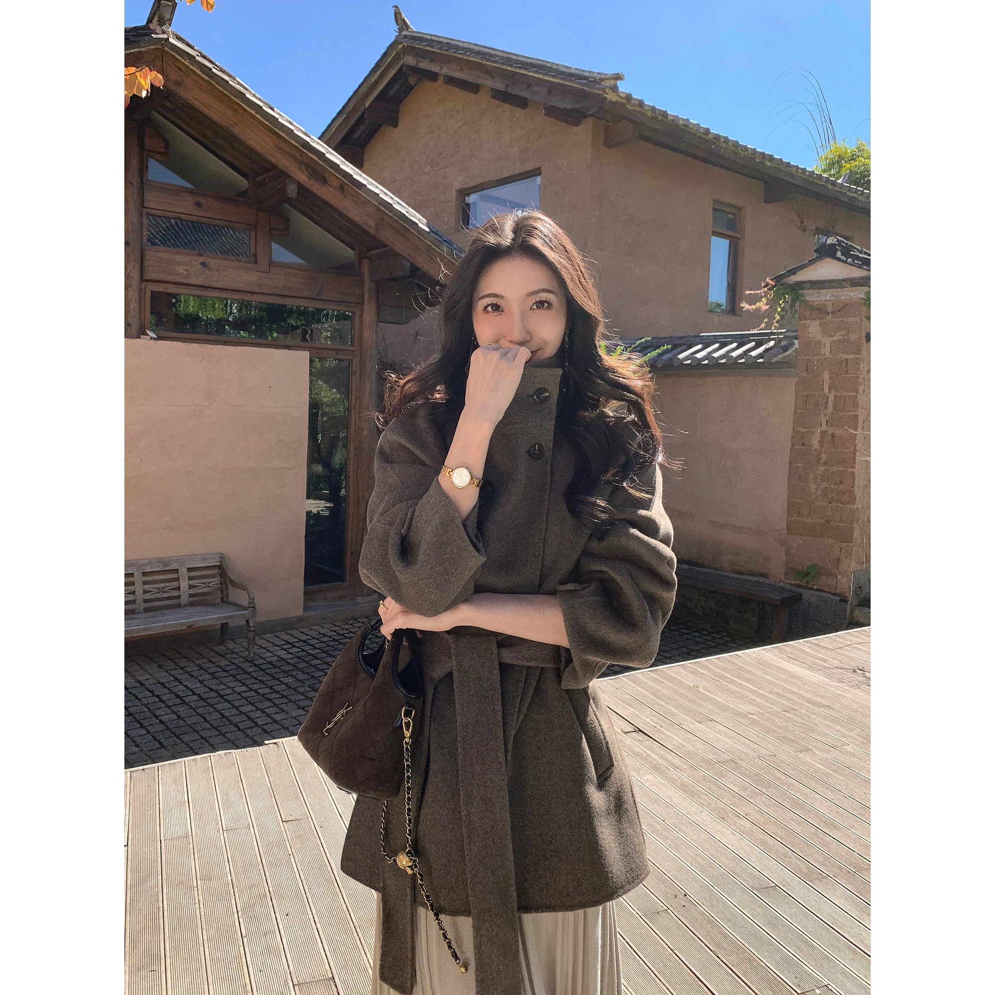 MULVAN 巴黎画册 羊毛立领双面呢外套女高级感气质短款毛呢大衣