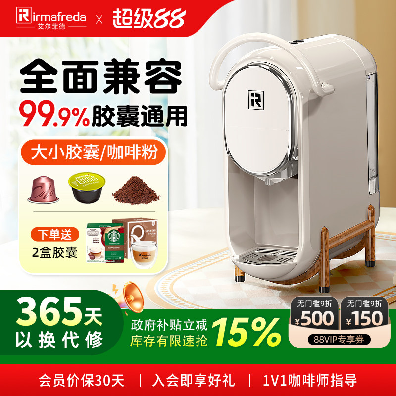 艾尔菲德胶囊粒咖啡机全自动小型家用便携式办公室通用咖啡粉一体