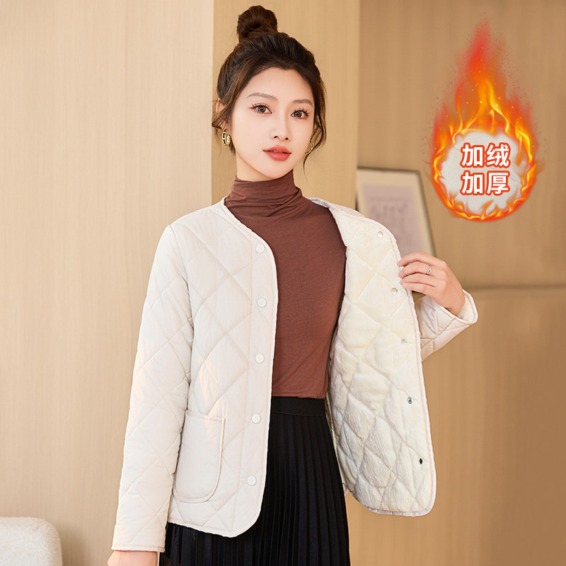 秋冬2025女士修身加绒保暖羽绒棉内胆短款加厚棉袄中老年轻薄外套