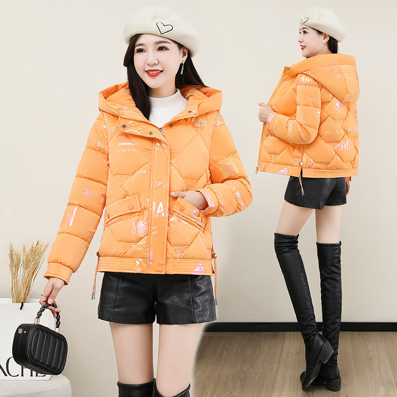 时尚印花亮面免洗棉衣女短款冬季新款加厚保暖百搭棉服棉袄外套潮