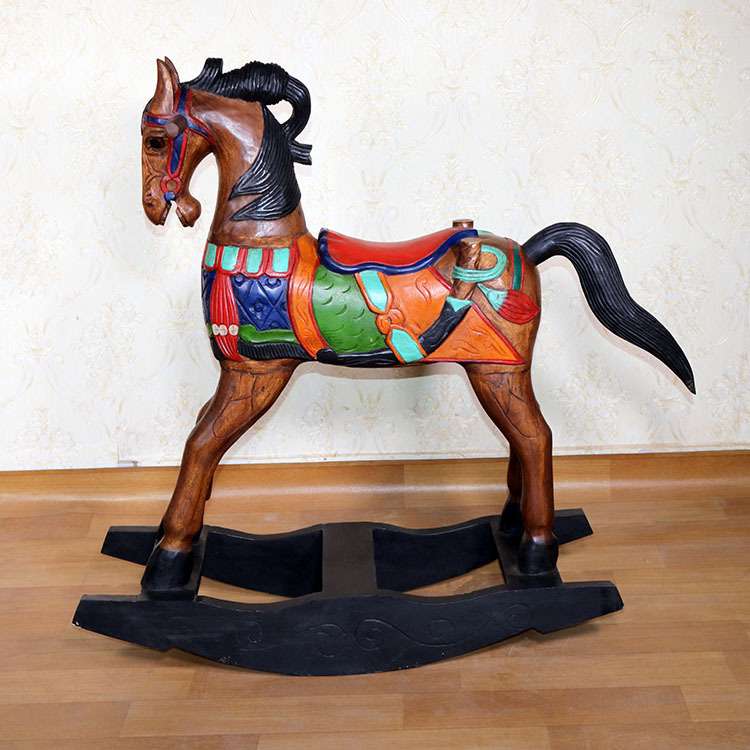 泰国创意木雕彩绘儿童玩具 大号实木摇摇马木马 家居店面装饰摆件