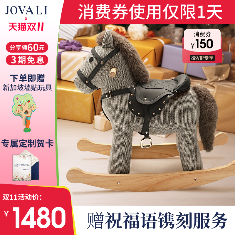 jovali儿童摇摇马实木定制宝宝周岁生日礼物玩具安抚陪伴家居装饰