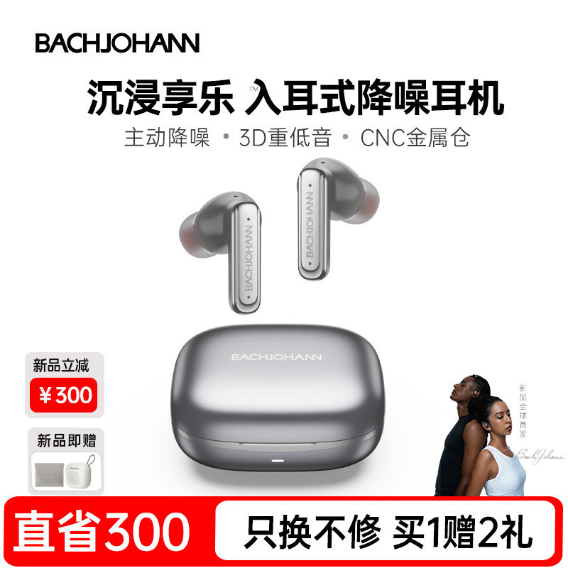 巴赫主动降噪蓝牙耳机双通话HIFI保真无线运动入耳式音乐手机耳机