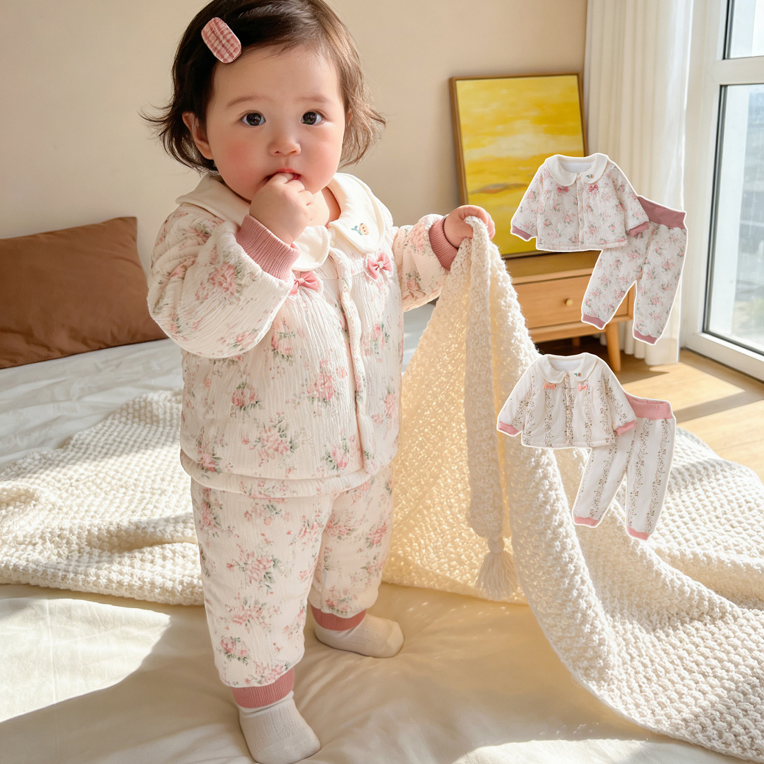 女宝宝冬季棉服两件套婴幼儿秋冬款分体套装夹棉加厚棉衣棉裤一岁