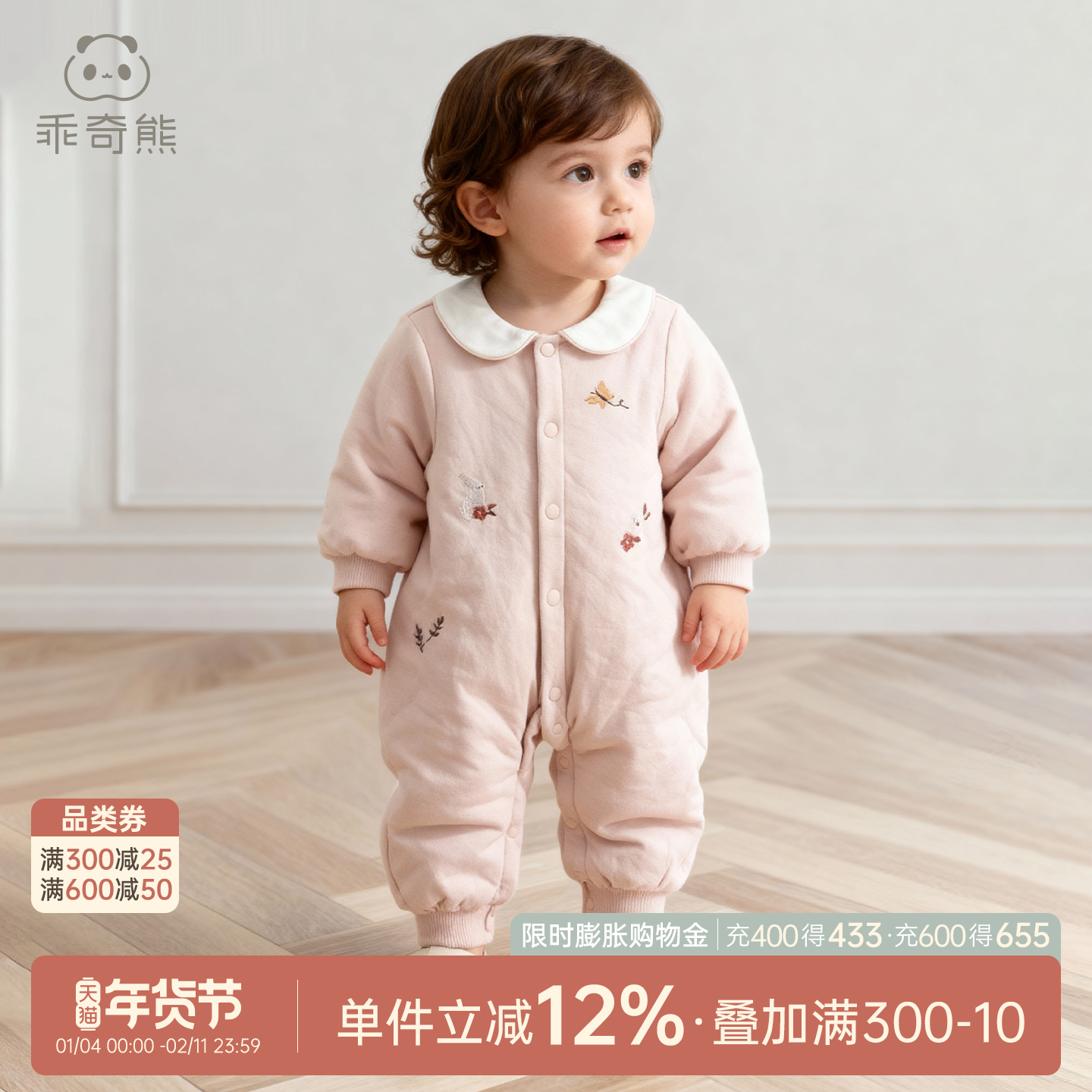 【暖护棉】女宝宝抗菌夹棉连体衣婴幼儿加厚棉服保暖哈衣爬服冬季