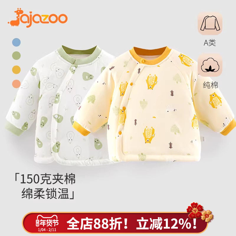 婴儿夹棉上衣秋冬保暖开衫纯棉a类男女宝宝衣服婴幼儿外套棉衣服