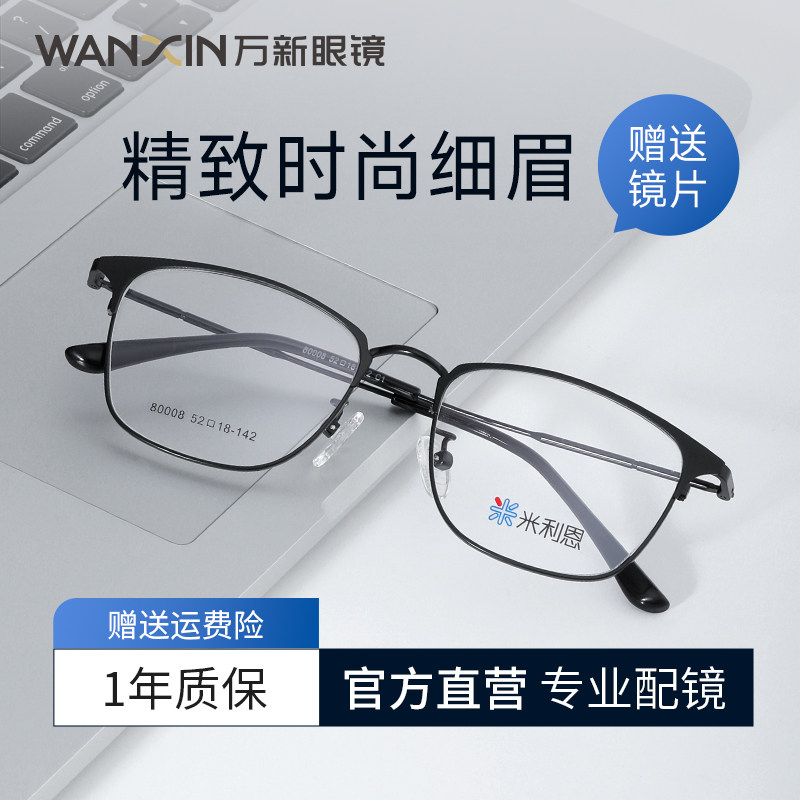 万新近视眼镜 方框防蓝光辐射眼镜框架男女款超轻眼镜MLN80008