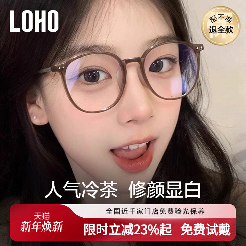 LOHO防蓝光眼镜女款近视可配度数防辐射抗疲劳超轻大脸眼睛眼镜框
