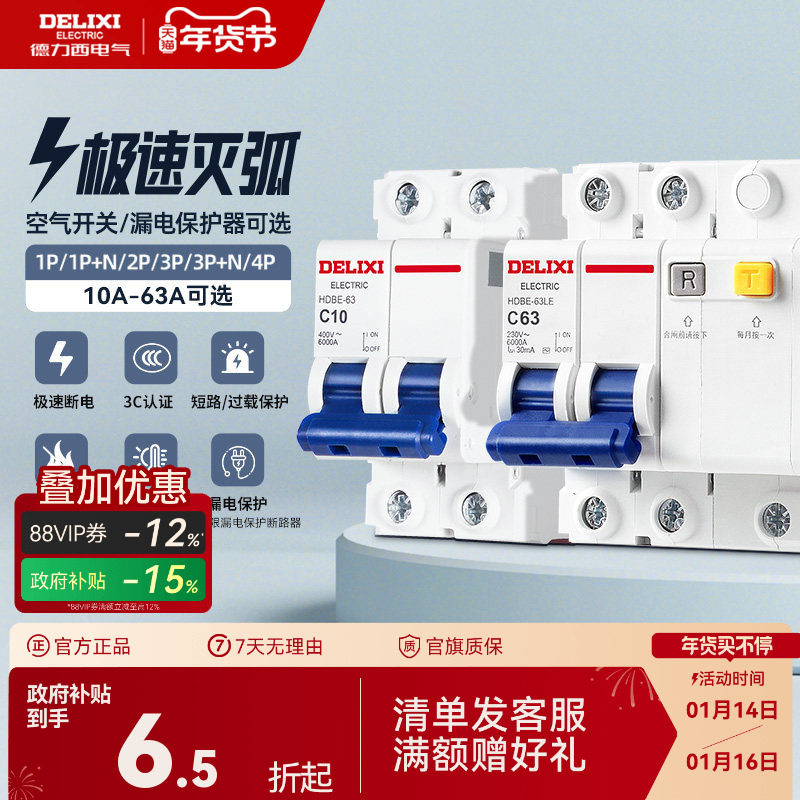 德力西断路器官方家用空气开关小型空气开关带漏电保护电闸断路器