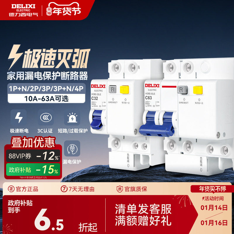 德力西漏电保护器官方店空气开关断路器空开漏保电闸家用空调配电