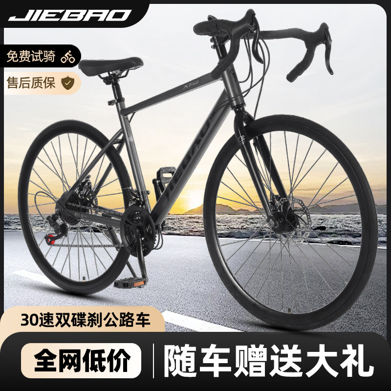 公路自行车男款超快竞速单车碟z刹直把活飞变速超轻实心胎男式女
