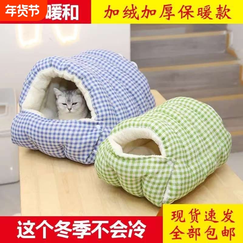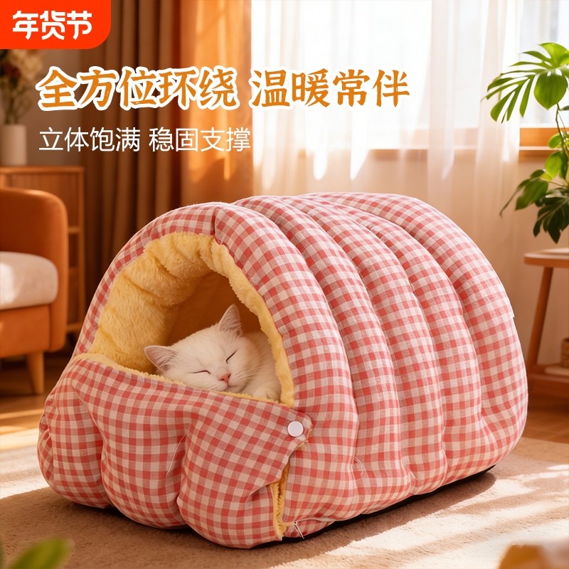 猫窝冬季加厚保暖半封闭式可拆洗四季通用猫咪窝冬日狗窝安全感窝
