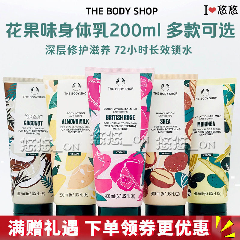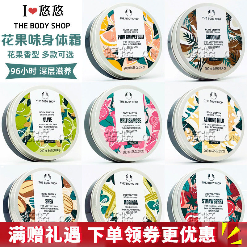 THE BODY SHOP西柚玫瑰草莓芒果辣木花杏仁牛奶优格身体乳200ML