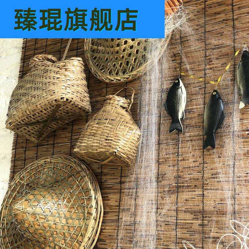 怀旧挂件农家乐装饰竹编簸箕鱼篓斗笠草鞋仿真农作物餐厅农具道具