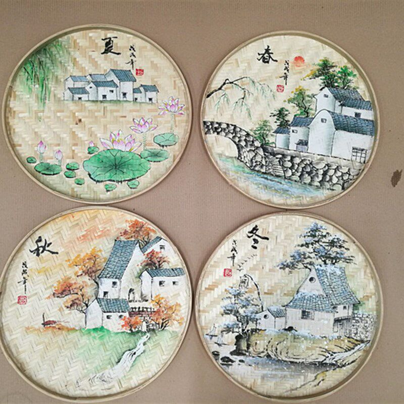 苏里竹编竹制品筛子创意农家乐装饰绘画圆簸箕托盘环创舞蹈幼儿园