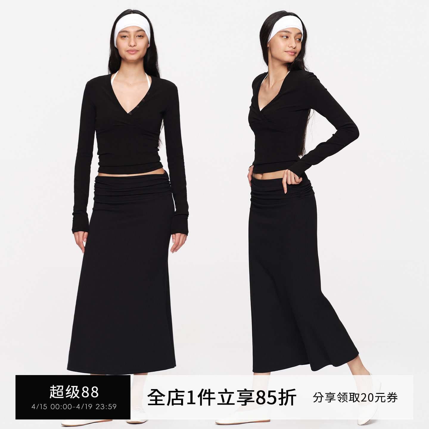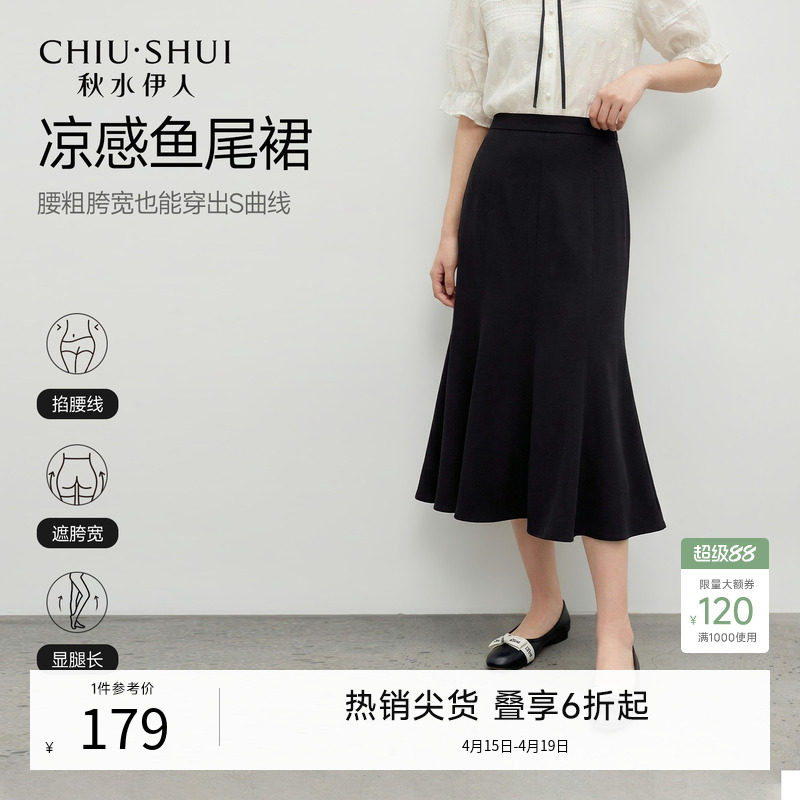 SMIIILE修身显瘦简约黑色鱼尾半身裙a字垂坠感中长包臀半裙气质