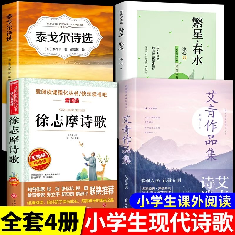 小学生现代诗繁星春水冰心四年级下册阅读课外书必读正版艾青诗选泰戈尔徐志摩现代诗集大全散文集精选小学散文读本儿童诗歌合集