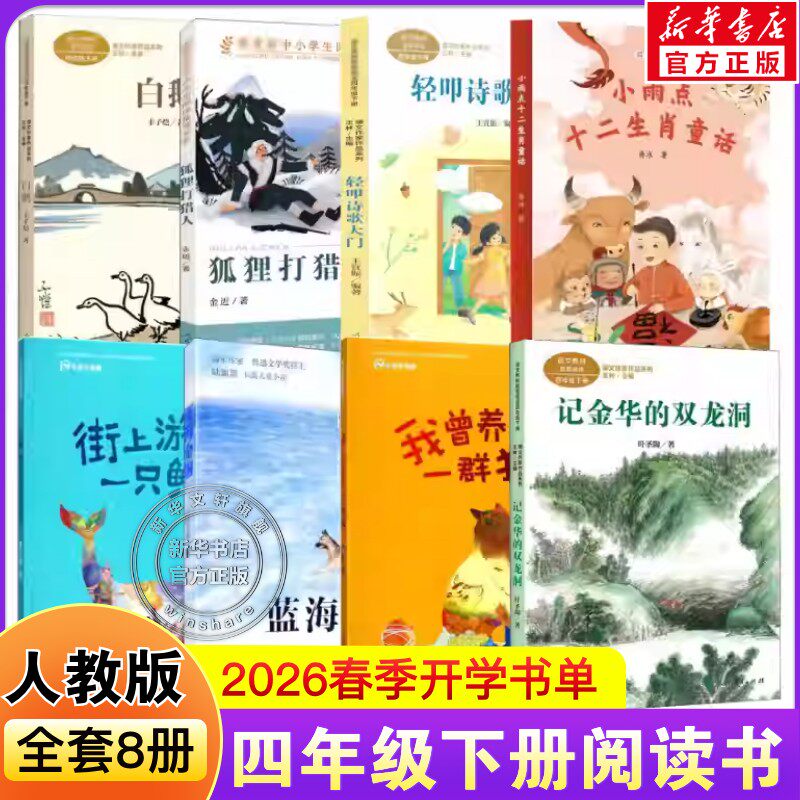 2026人教版四年级下册春季开学阅读课外书我曾养过一群猫街上游过只鲸轻叩诗歌大门白鹅记金华的双龙洞小雨点十二生肖童话蓝海金钢