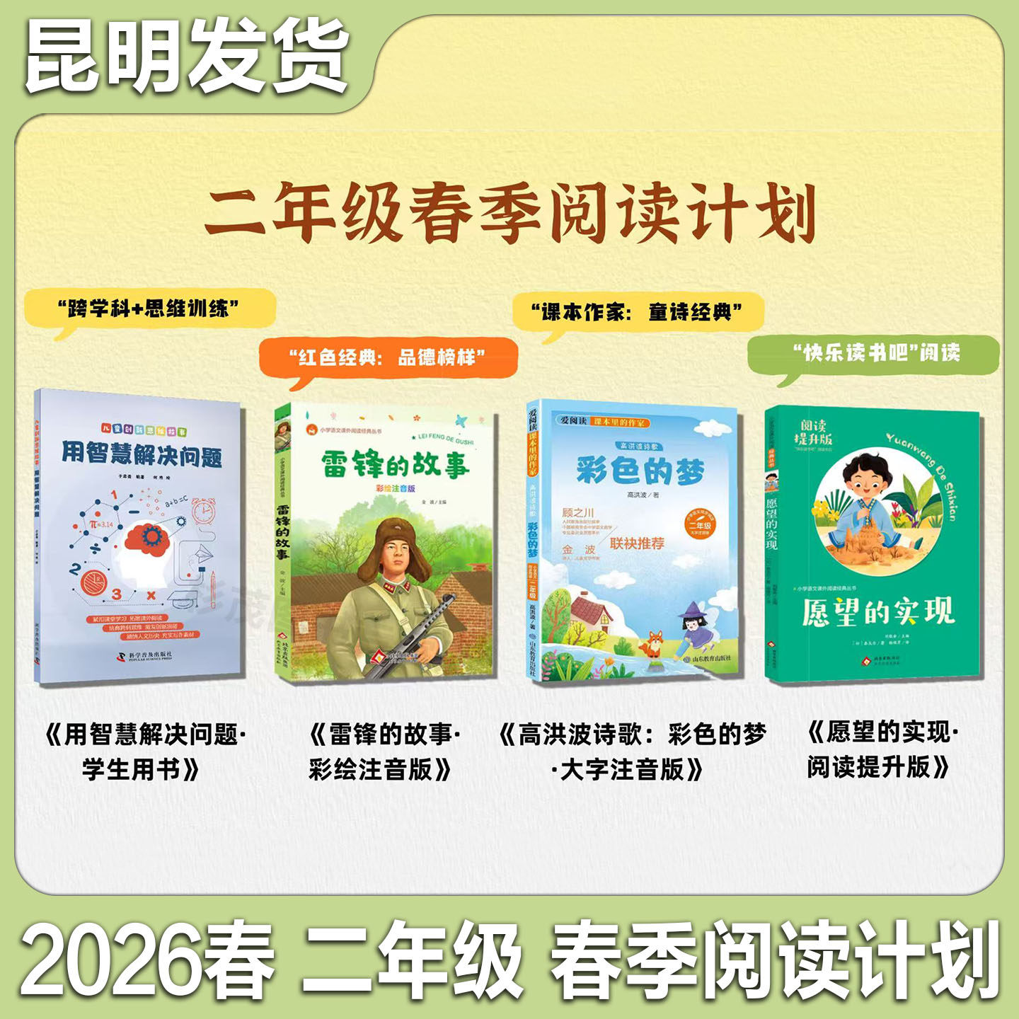 昆明发货春季阅读计划书目二年级雷锋的故事高洪波诗歌彩色的梦用智慧解决问题愿望的实现(阅读提升版)