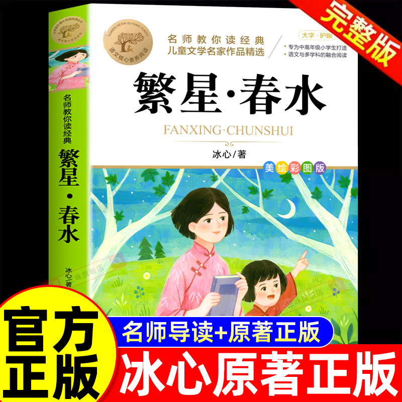 当当正版书籍 繁星春水四年级下册 冰心完整版阅读课外书的小学生无障碍阅读儿童文学全集诗歌集大全读本散文集小学三年级四下