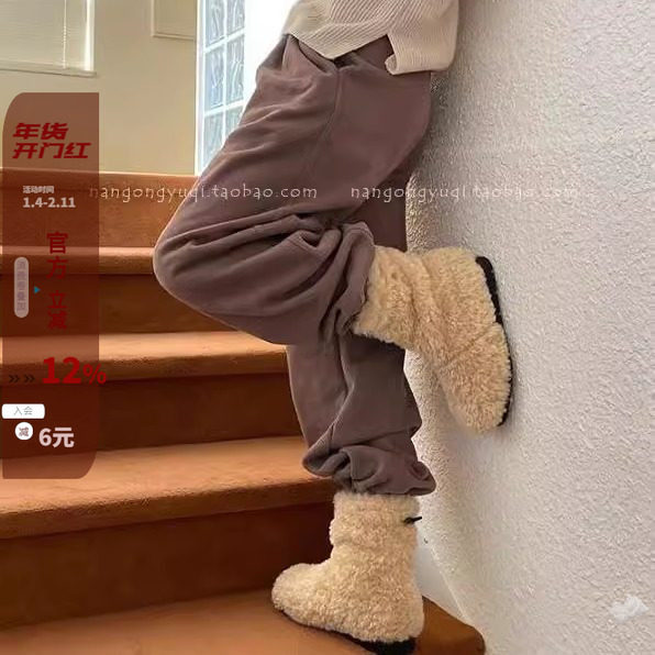 现韩国东大门代购but2025冬新款百搭宽松纯色松紧腰加绒休闲裤女