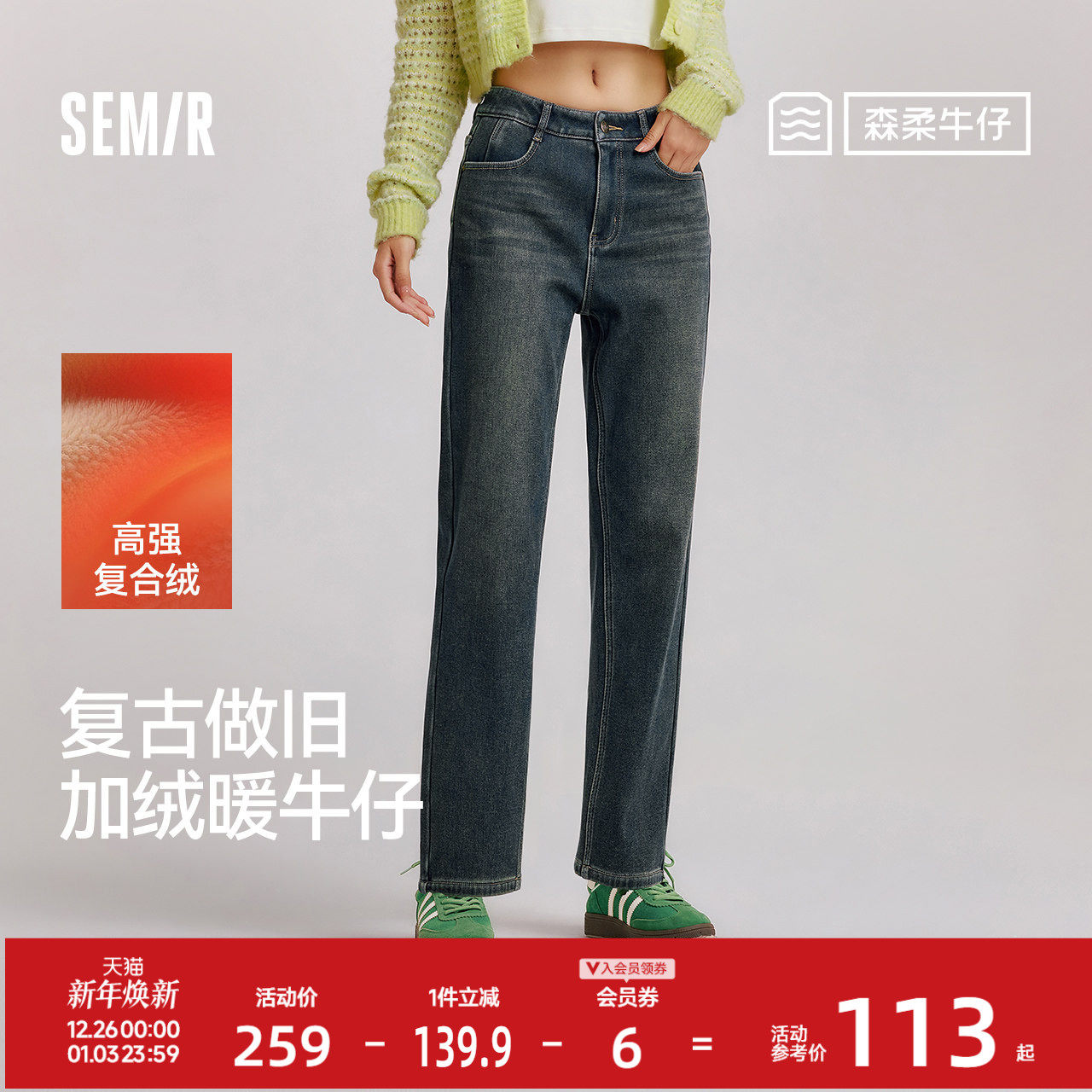 - 加绒牛仔裤