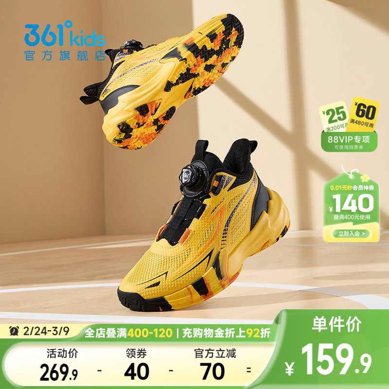 悍将|361度童鞋儿童篮球鞋男童运动鞋旋钮青少年学生鞋大童鞋透气