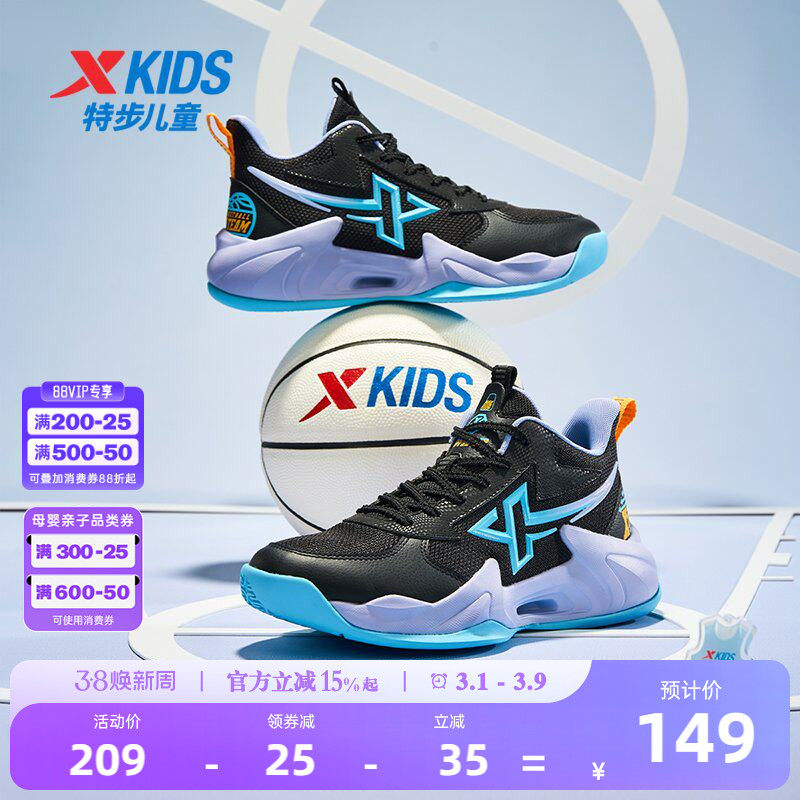 特步童鞋儿童篮球鞋2026春季新款大童运动鞋男童鞋子耐磨训练鞋
