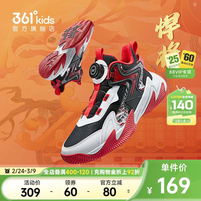 御龙|361童鞋儿童篮球鞋男童运动鞋2026春季新款红色新年运动鞋