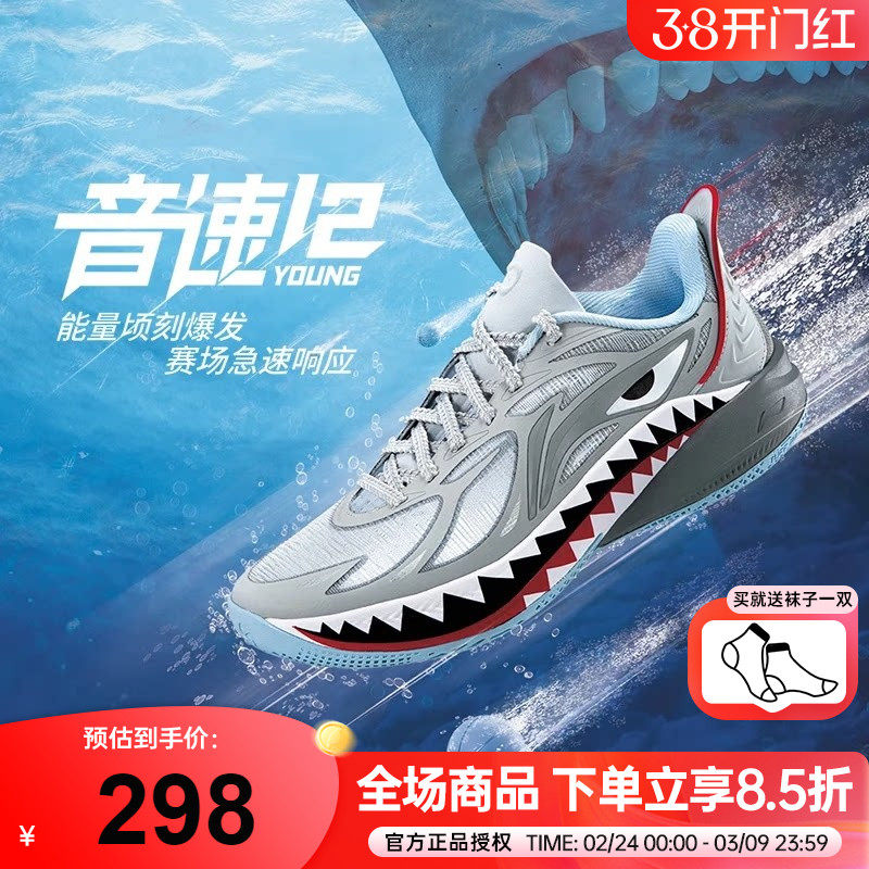 李宁音速12儿童篮球鞋大白鲨26新款男童大童专业球鞋青少年运动鞋