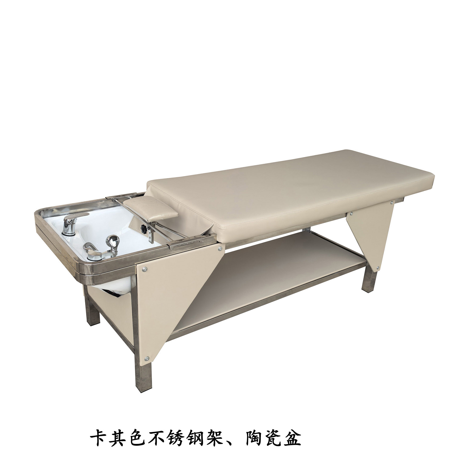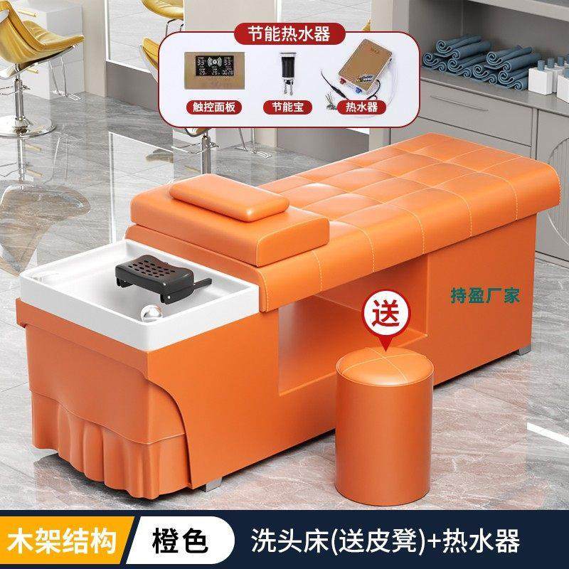 洗头床理发店专用美发店小型洗头按摩床不锈钢架陶瓷盆速热热水器