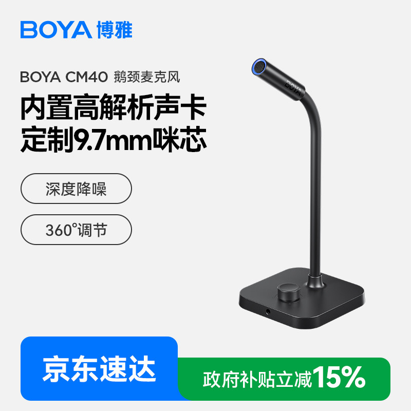 BOYA博雅鹅颈电容麦克风电脑台式笔记本会议游戏直播usb桌面话筒