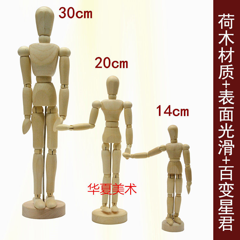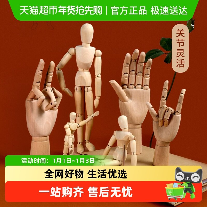 美术漫画12寸木人模型木头人30cm20cm素描静物木偶人10寸小木人关节人偶木手关节可动木质关节手美术绘画用品