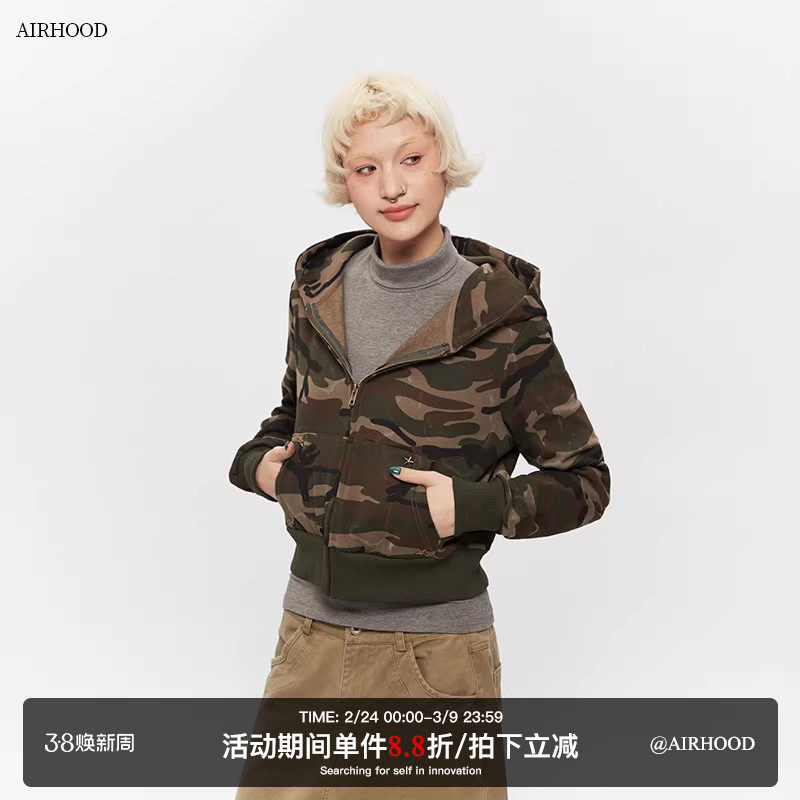 AIRHOOD 时尚迷彩开衫女士卫衣外套连帽短款小个子帽衫潮牌高级感