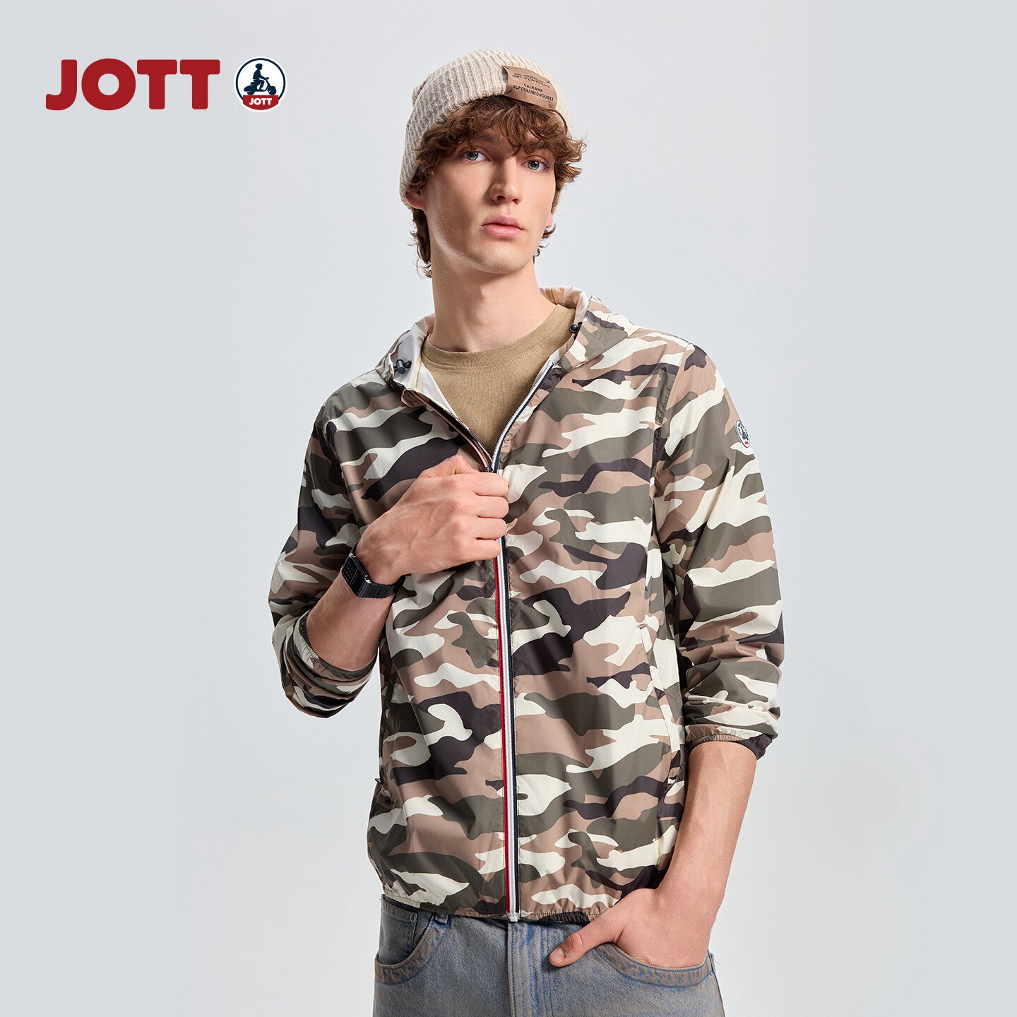 JOTT 专柜正品 | 迷彩连帽夹克 简约时尚男士短款长袖外套 春新款