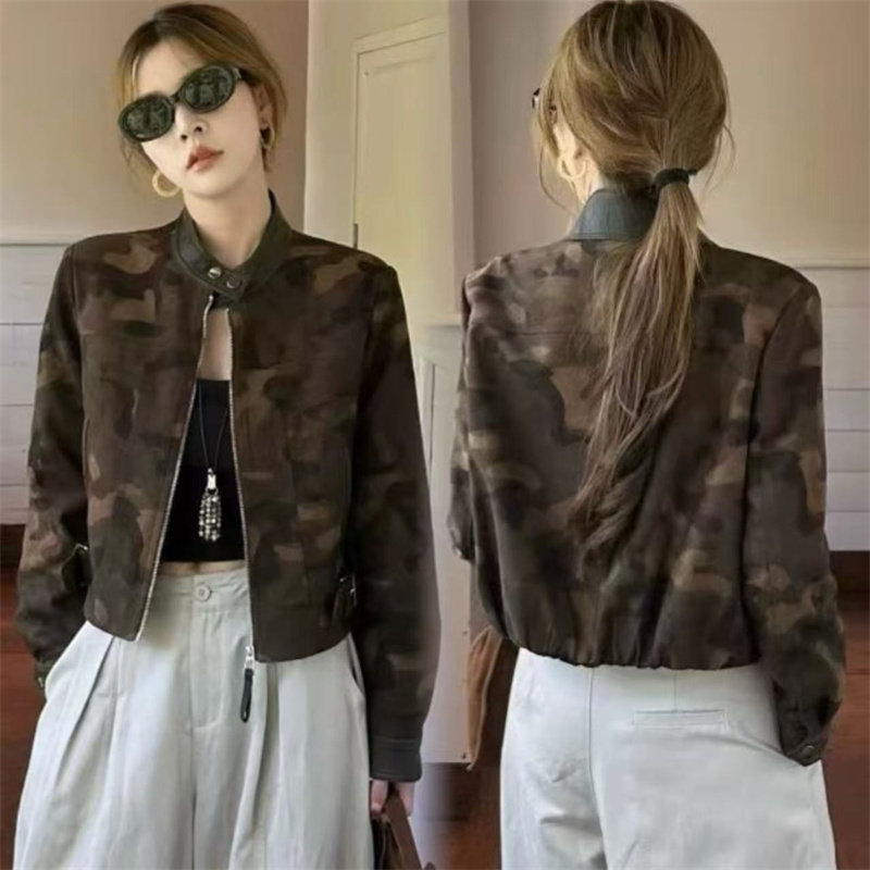 荒荒家 美式迷彩薄外套2025夏季新款复古辣妹短款BF风夹克开衫女