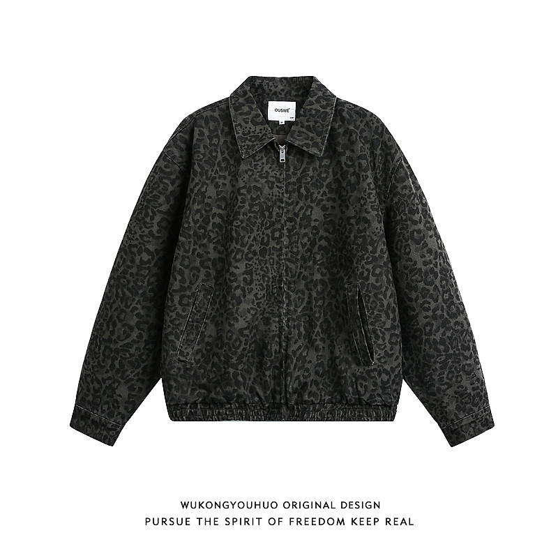 悟空有货美式复古迷彩短款开衫外套男女潮牌cleanfit情侣百搭夹克