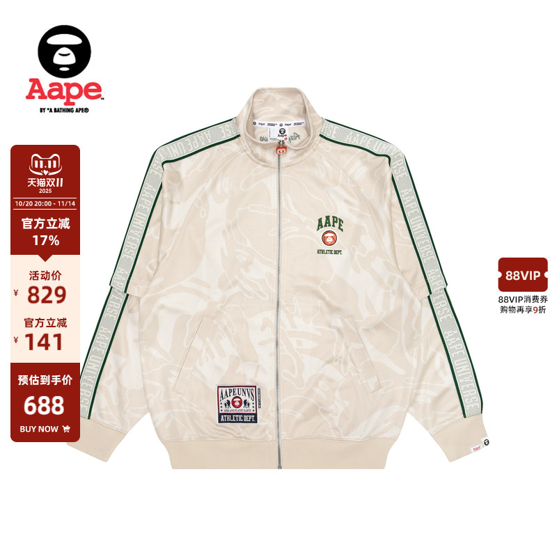 Aape男装春夏猿人徽章迷彩可拆卸短袖多穿拉链卫衣外套B302XXM
