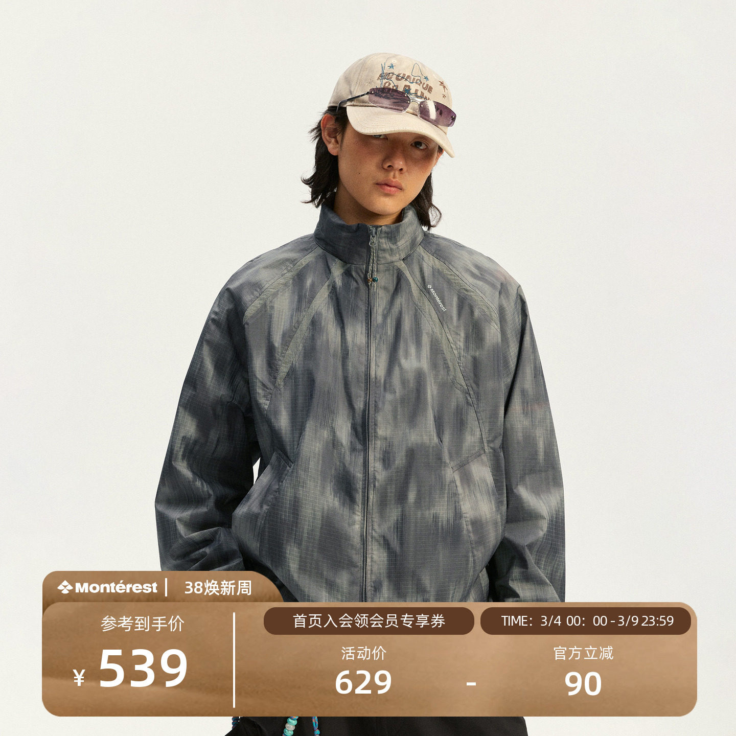 瞬时山野Monterest户外防泼水廓形迷彩暗纹立领藏帽短款夹克外套