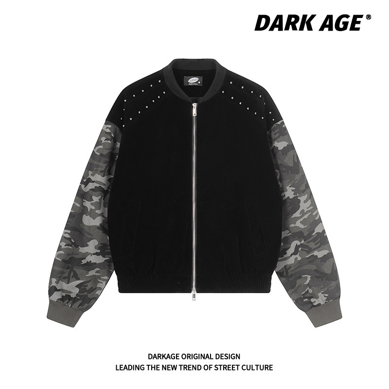 DARKAGE原创美式迷彩铆钉设计感棒球服外套男女春季宽松短款夹克